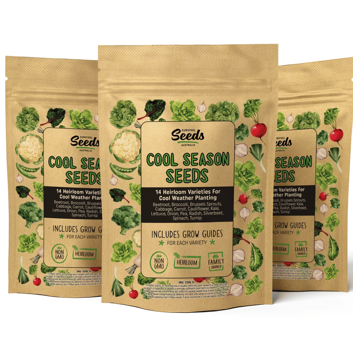A selection of 14 x Heirloom Cool Season seeds for the Aussie backyard veggie garden.